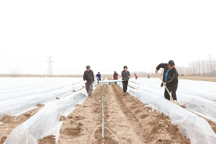 人勤春来早,春耕正当时。眼下,江苏省盐城市响水县小拱棚西兰花定植进入高峰期,田间地头一派繁忙景象。种植户抢抓农时,扶苗、定植、覆膜、搭棚,一垄垄西兰花幼苗便如五线谱一般“绘”在了“希望的田野”上,连片银棚在春光中熠熠生辉,绘就了春日乡村振兴的生动图景。