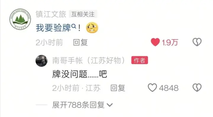 镇江文旅直接在网友调侃视频下留言