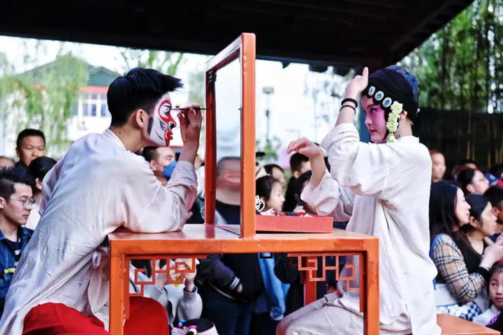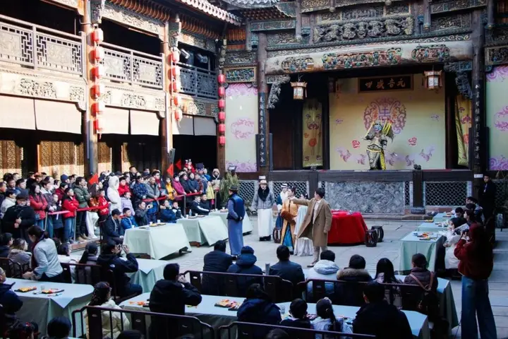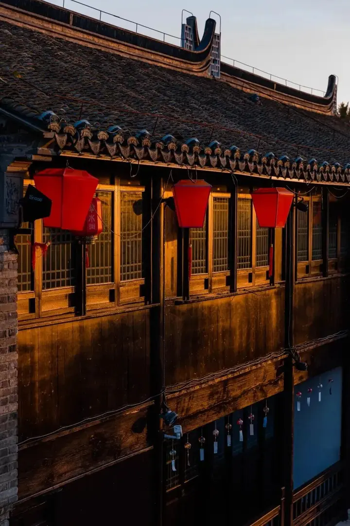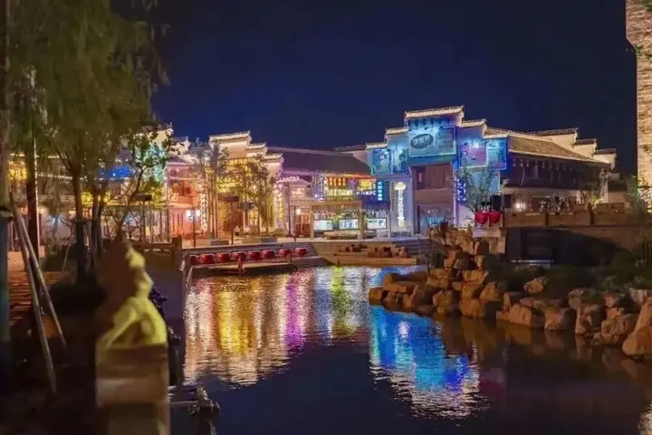 穿过水巷,便是淮剧小镇。戏台上的淮调婉转,夜空下的杂技惊险,当夜幕降临,沉浸式的演艺让古老的技艺在灯火里重新活了过来。